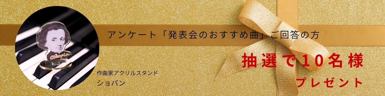 『ムジカノーヴァONLINE』では、ピアノ指導者や学習者、保護者の方を対象に、「発表会のおすすめ曲」についてアンケートを実施しております。演奏してよかった曲やお好きな曲、生徒さんの成長が感じられた曲などを、ぜひお教えください。